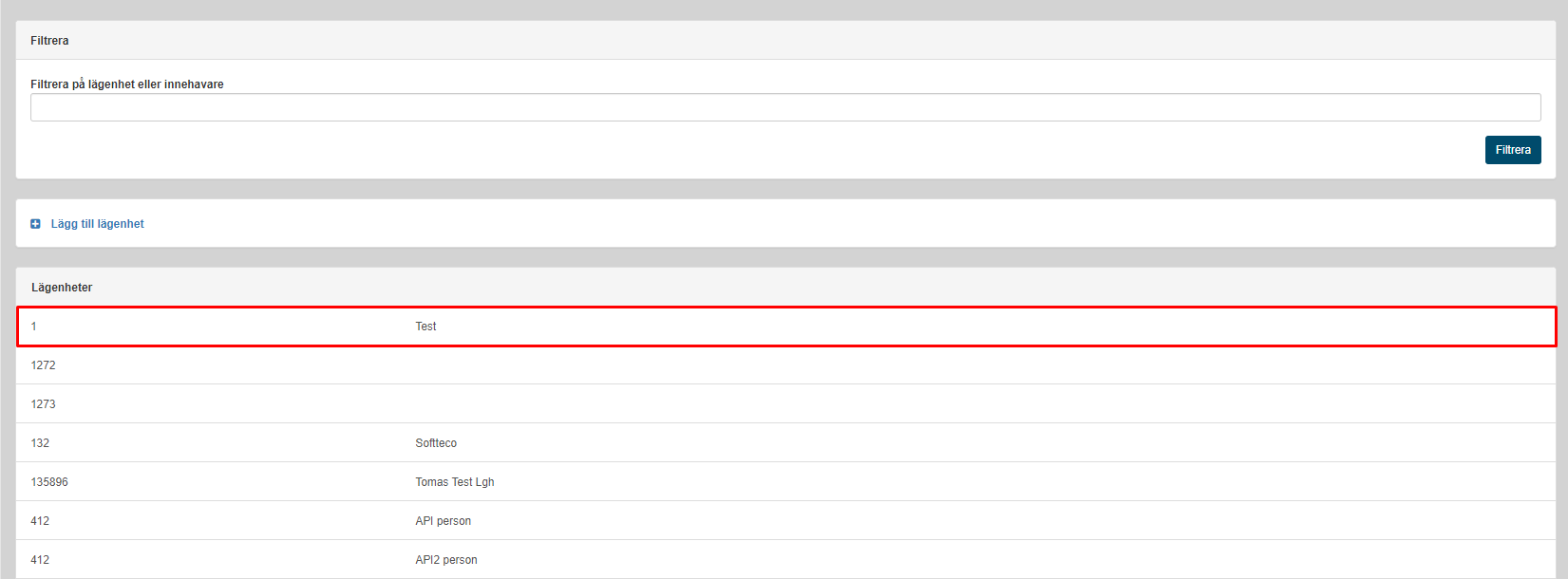 För att editera en lägenhet navigera till Hantera -> Lägenheter klicka på raden för den lägenheten som du önskar att ändra på.