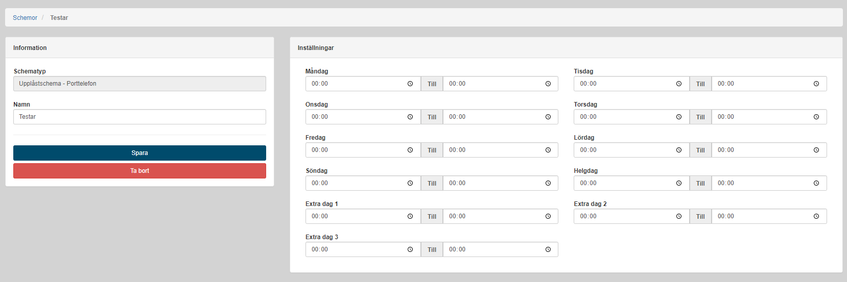 Under inställning anger du starttid och stoptid för resp. schema för angiven dag