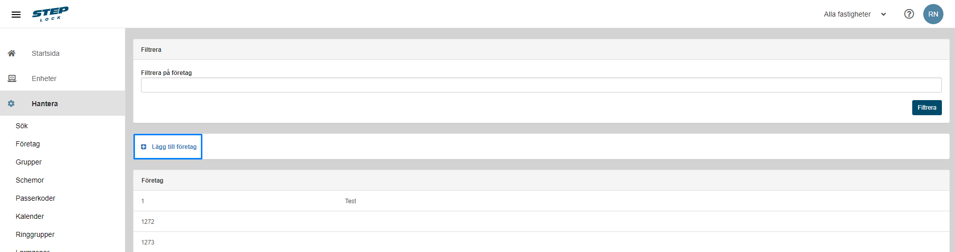 För att skapa ett företag så måste man ha hostingtyp företag eftersom att gränssnittet ser olika ut beroende på vilken hostingtyp man har.